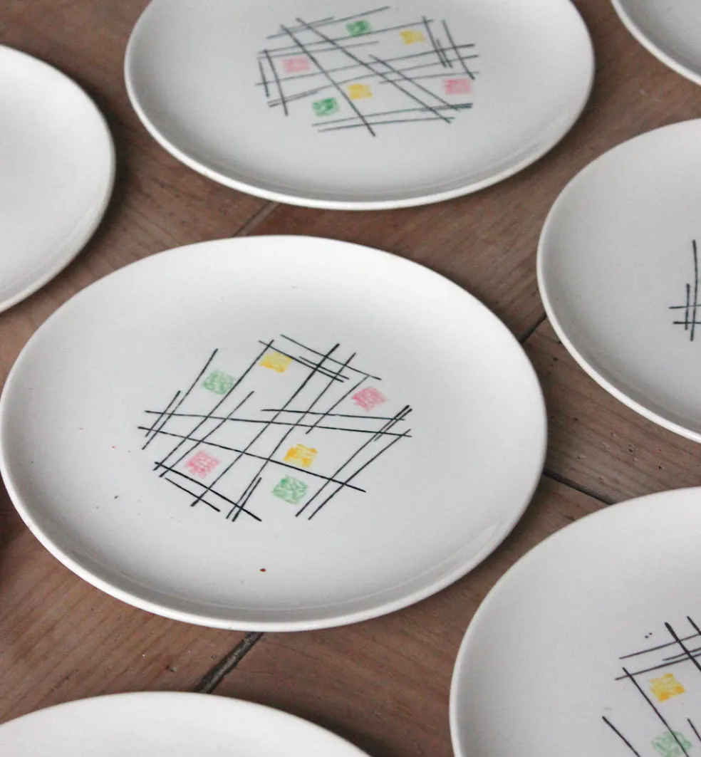 Lot de dix assiettes à dessert de l’original modèle « Arlequin » de la manufacture de Gien.