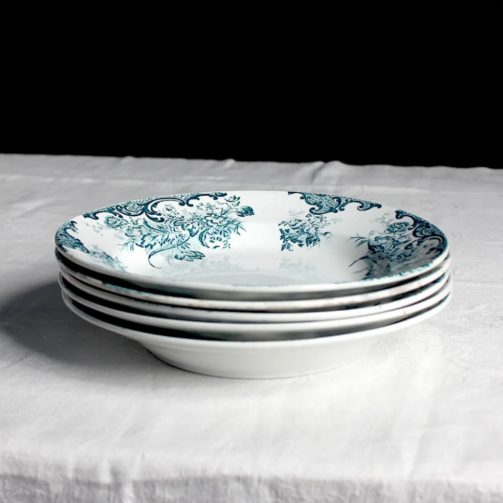 Grandes assiettes creuses de la fin du XIXème au magnifique décor végétal bleu encre. Modèle Sully estampillé de la manufacture française de Saint Amand.