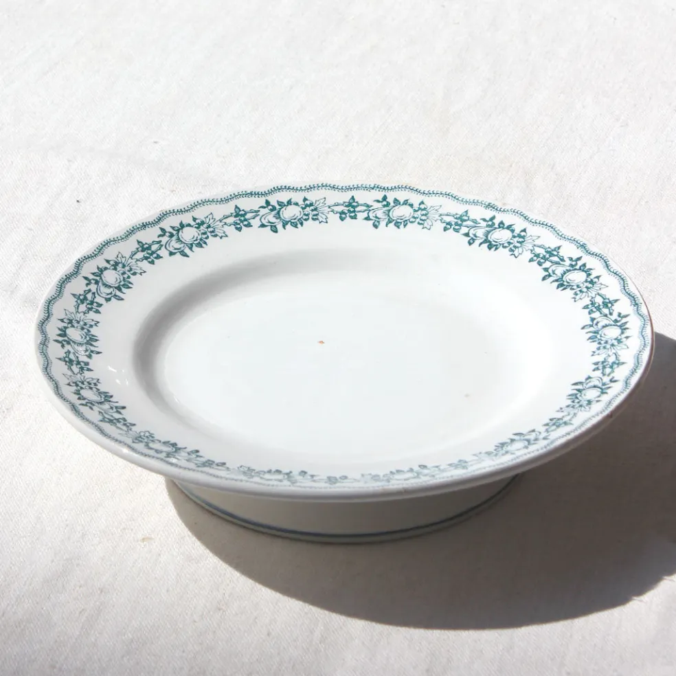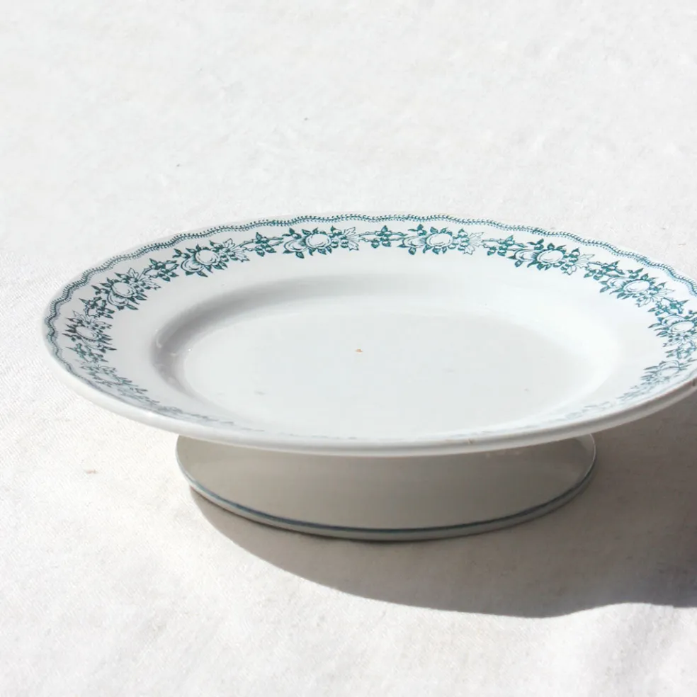 Assiette sur pied Saint Amand avec une frise aux fruits bleu canard.