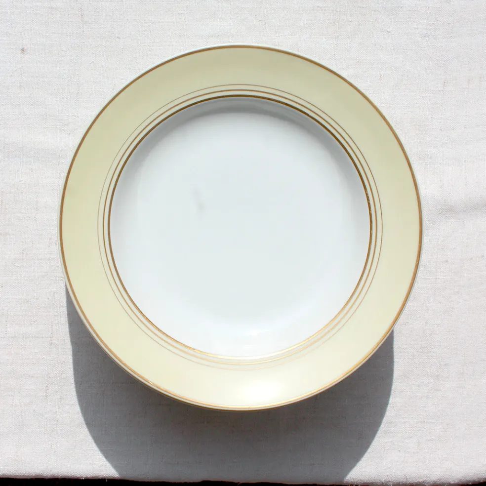 Très beau modèle en porcelaine de Limoges avec une bordure jaune pâle et des filets dorés.