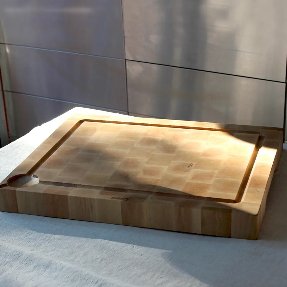 Entretien : Huiler une fois par mois avec de l’huile de cuisine, étaler 1 à 2 cuillères à soupe avec un chiffon propre.Ne surtout pas mouiller votre billot pour le nettoyer, racler le avec la lame d’un couteau ou un racloir.