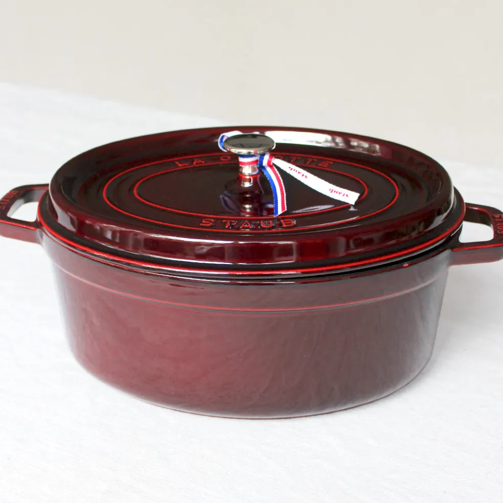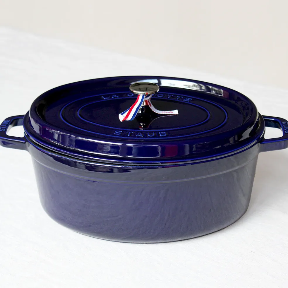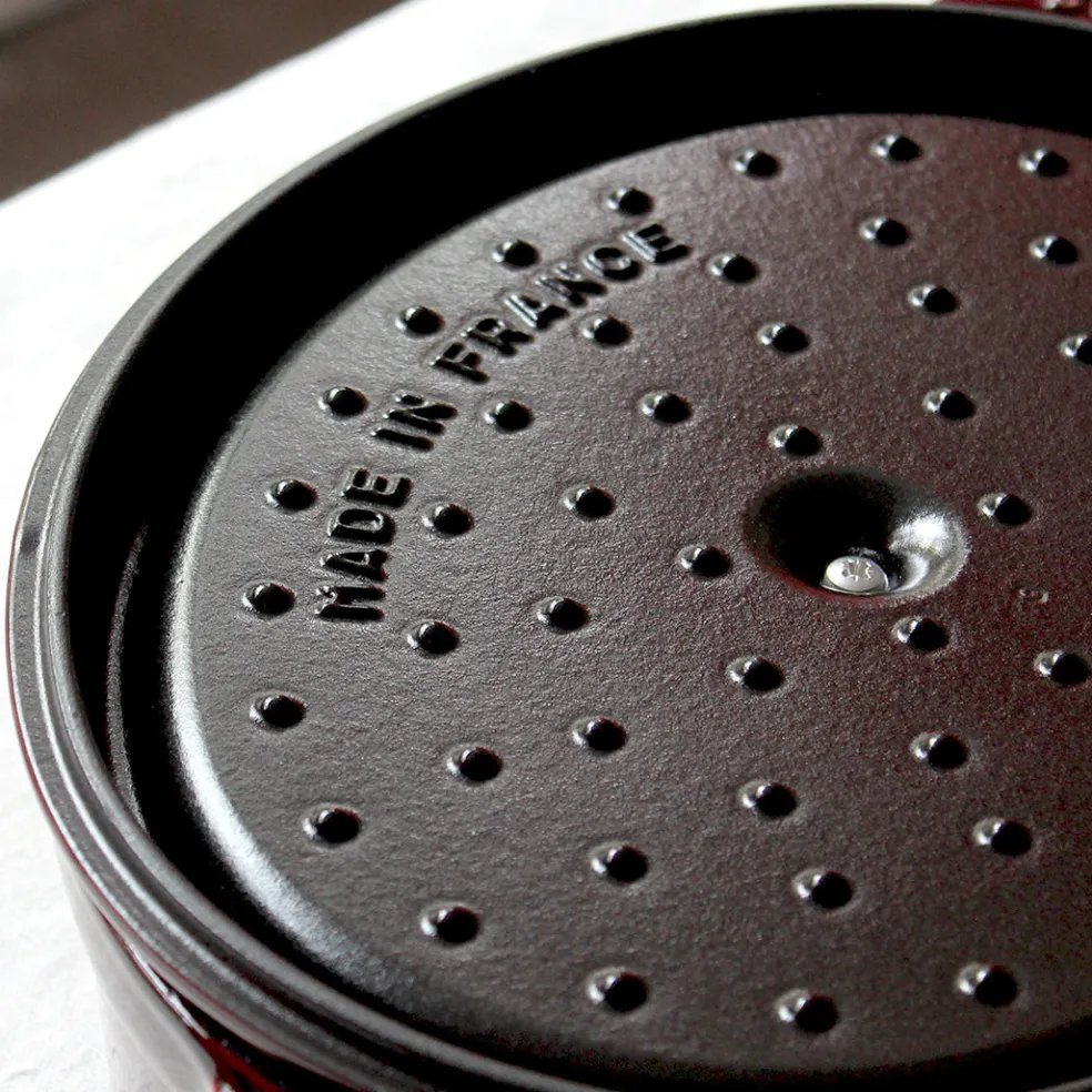 La cocotte en fonte par excellence, déclinée ici dans de magnifiques coloris. Elle permet une cuisson douce d’une grande variété de plats mijotés. Son couvercle innovant à picots permet de retenir l’humidité et de répartir la condensation de manière homogène afin d’arroser parfaitement vos préparations en cours de cuisson. L’intérieur émaillé noir résiste aux rayures mais surtout est idéal pour saisir et rôtir certains légumes et pièces de viandes. Compatible avec tous les types de feux (gaz, électrique, vitrocéramique et induction) mais également avec une cuisson au four ( jusqu’à 200°). Un incontournable de la cuisine française à adopter pour la vie.