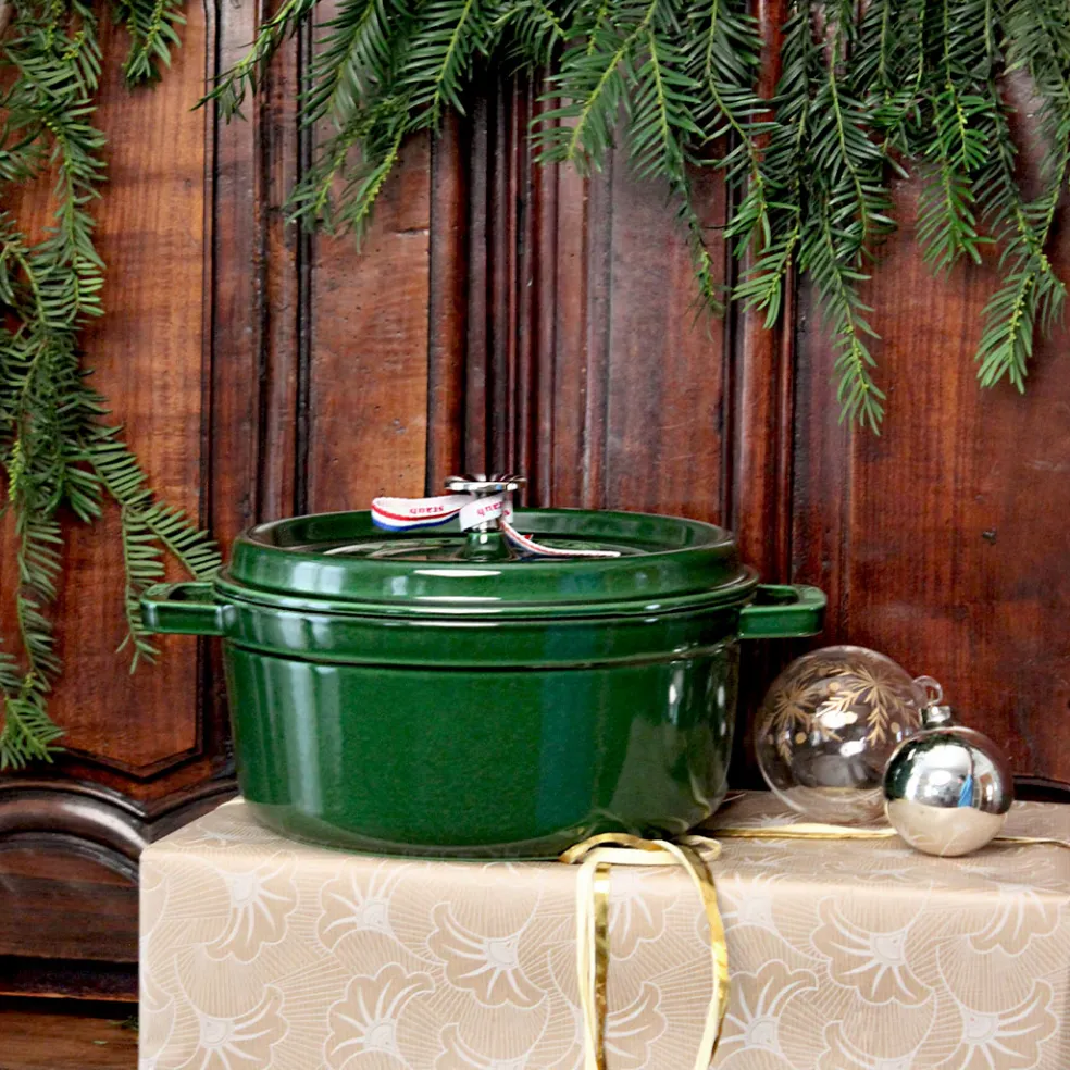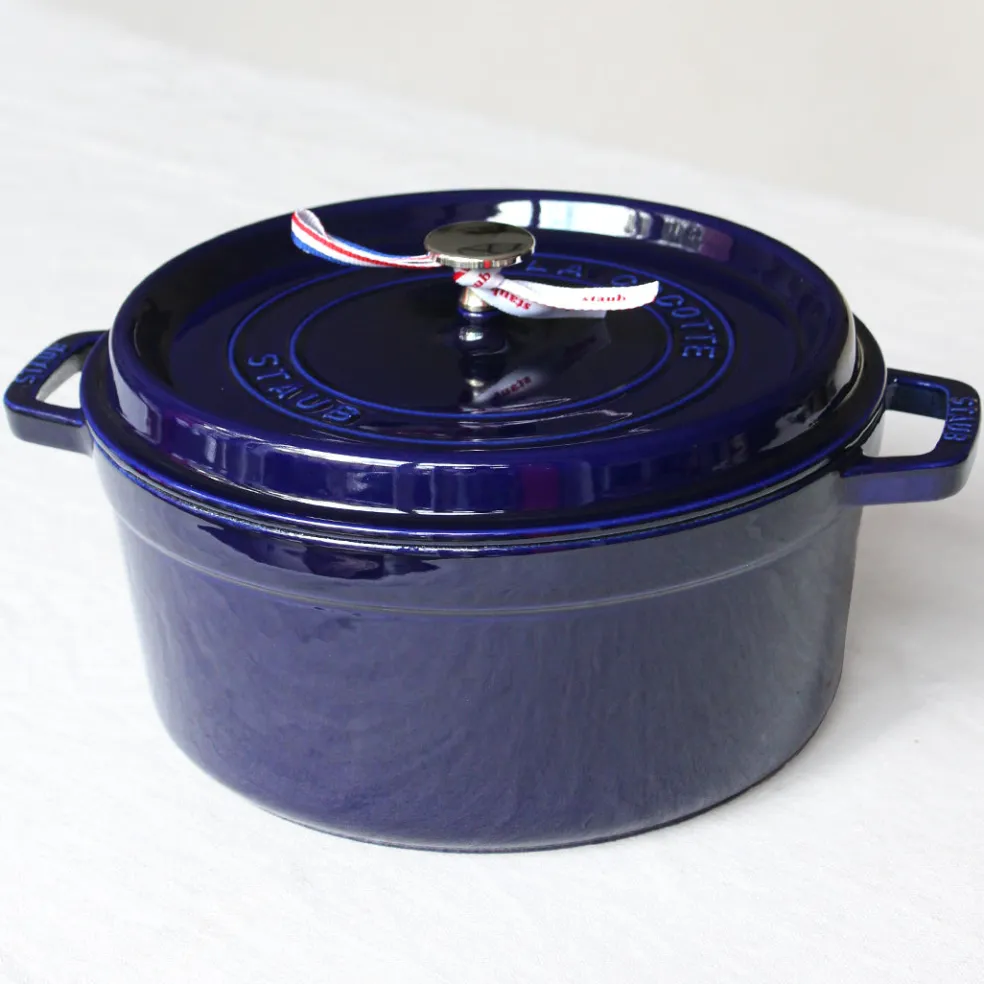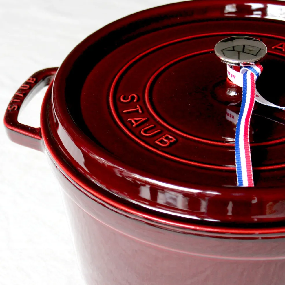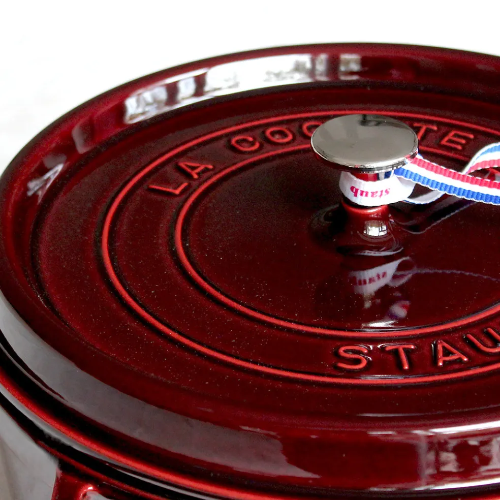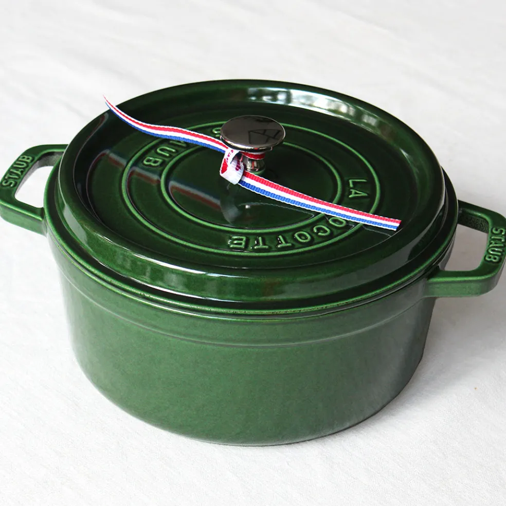 La traditionnelle cocotte en fonte, ici dans un format rond décliné dans de magnifiques coloris. Elle permet une cuisson douce d’une grande variété de plats mijotés. Son couvercle innovant à picots permet de retenir l’humidité et de répartir la condensation de manière homogène afin d’arroser parfaitement vos préparations en cours de cuisson. L’intérieur émaillé noir résiste aux rayures mais surtout est idéal pour saisir et rôtir certains légumes et pièces de viandes. Compatible avec tous les types de feux (gaz, électrique, vitrocéramique et induction) mais également avec une cuisson au four ( jusqu’à 200°). Un incontournable de la cuisine française à adopter pour la vie.