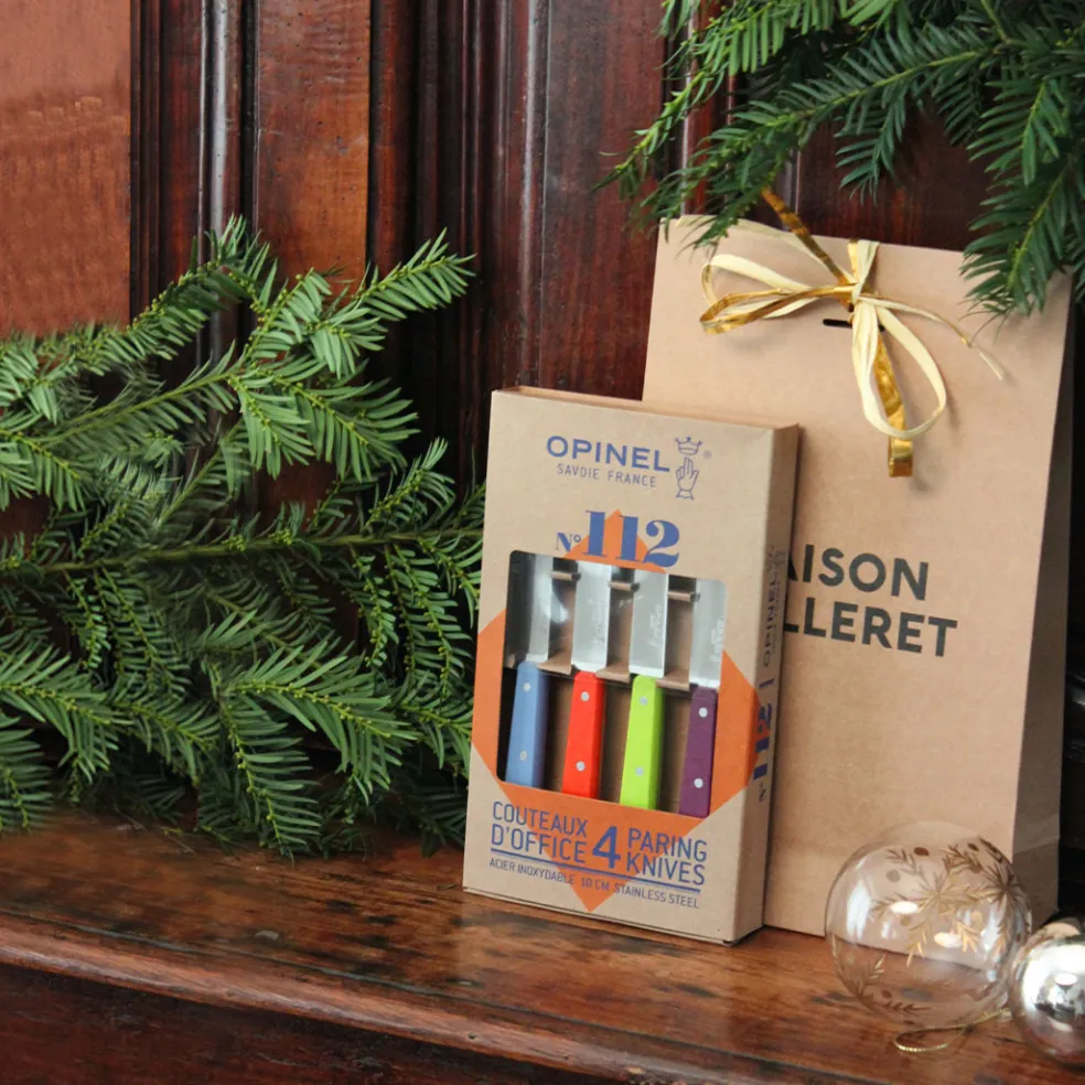 Coffret de couteaux d’office de la célèbre maison Opinel déclinés dans différentes couleurs. Ce couteau modèle n°112 est caractérisé par une lame pointue en acier inoxydable et un manche verni. Il est très polyvalent et utile au quotidien en cuisine.