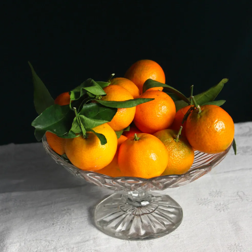Un compotier en verre ciselé tel une fleur. Un beau détail à poser sur une table de fête.
