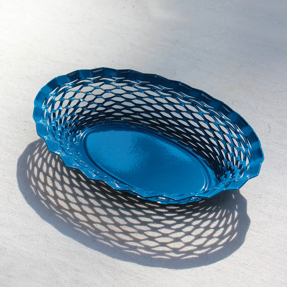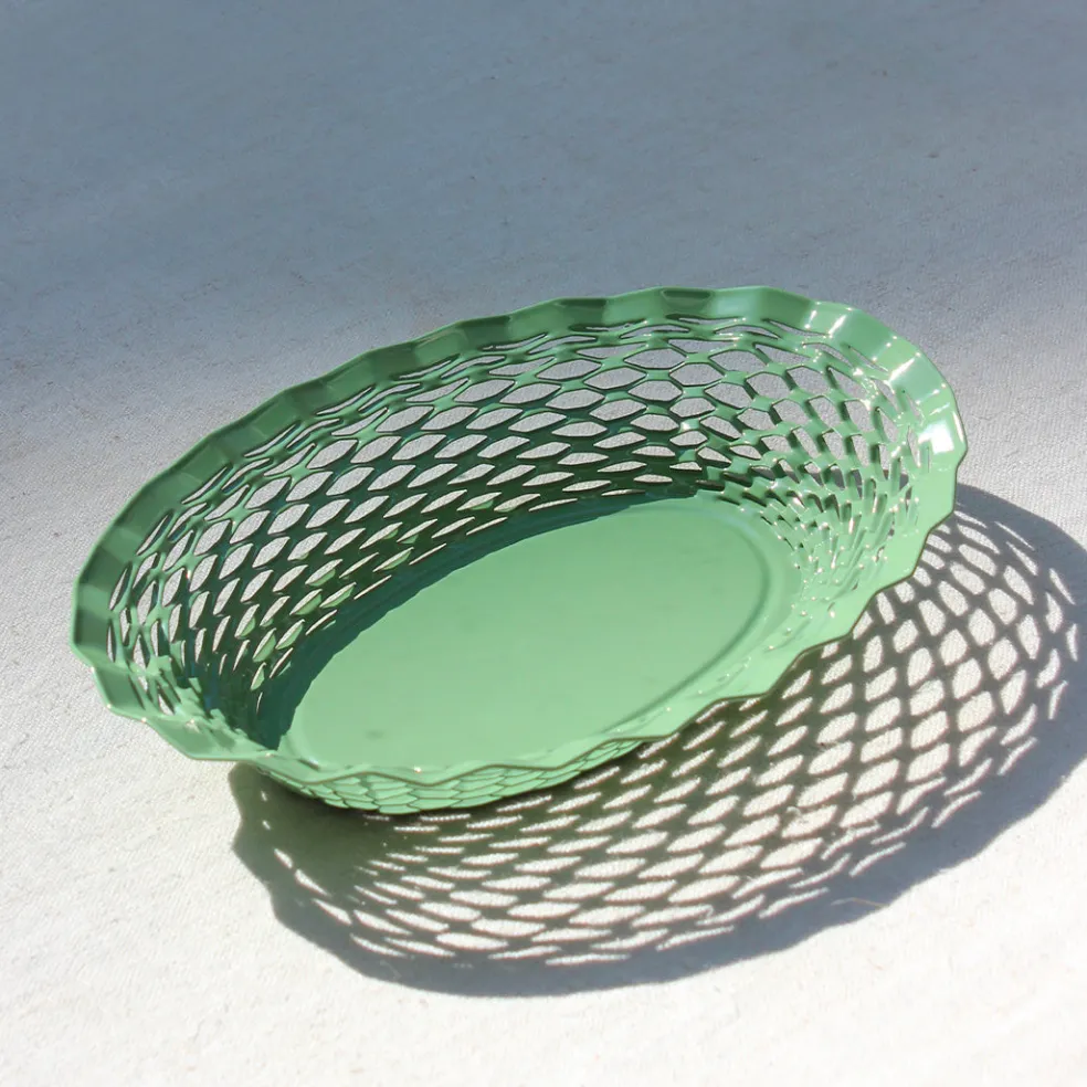 Une petite corbeille dans un style rétro en inox peint dans de jolies couleurs. Elle peut servir pour le pain, des fruits ou encore des viennoiseries. Déclinée en vert pastel, rouge brique ou bleu azur.