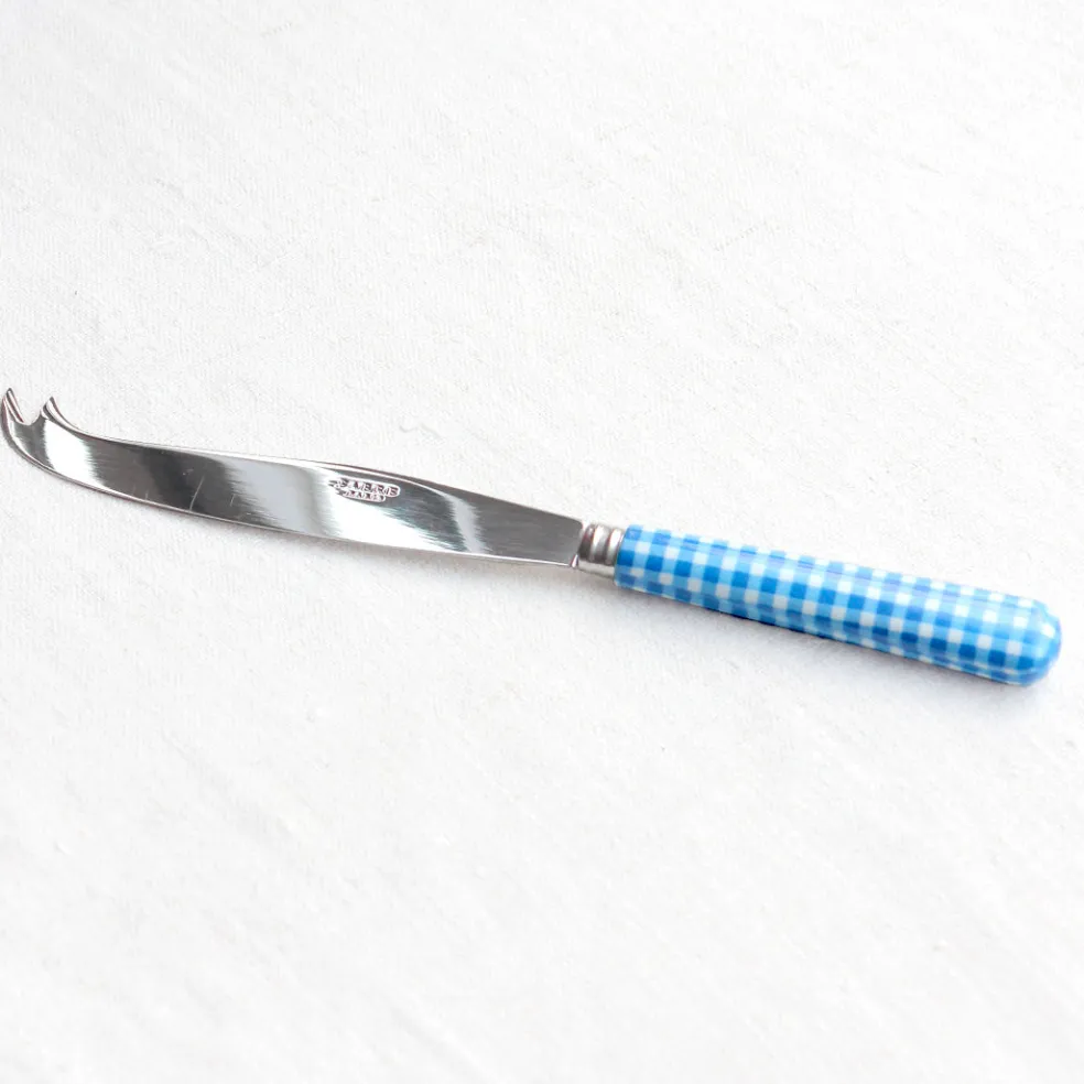 Couteau à fromage avec un manche décoré. Sa lame en inox est robuste dans le temps et son embout à deux dents permet un service facile. Un modèle signature de la maison Sabre Paris.