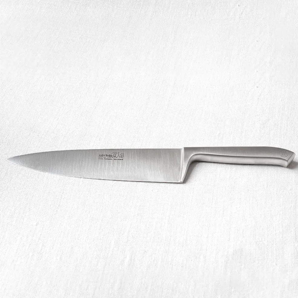 Un couteau de chef monobloc en acier inoxydable de haute qualité. Fabriqué à partir d’une unique pièce, le rendant 100% forgé.
