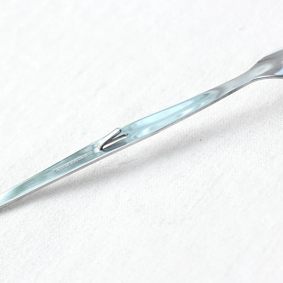 La cuillère à confiture classique en inox caractérisée par une longue tige et un crochet permettant de la suspendre sur le rebord du pot.