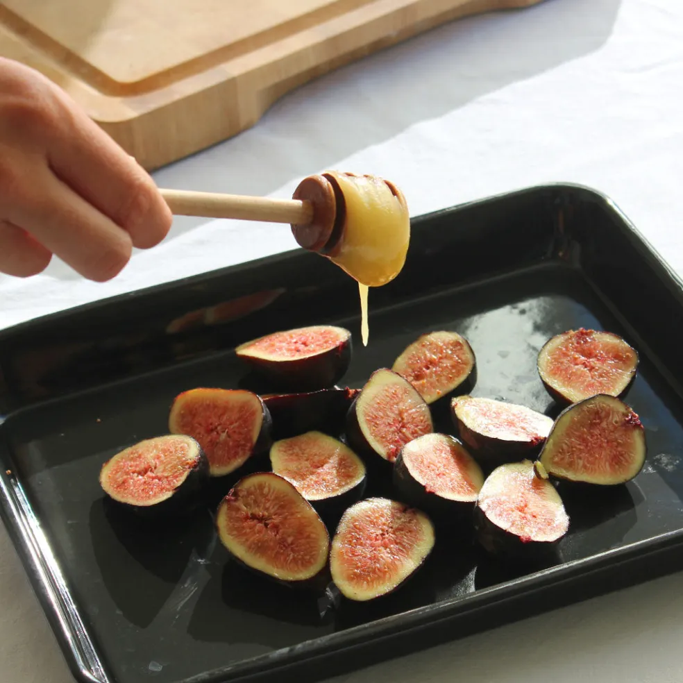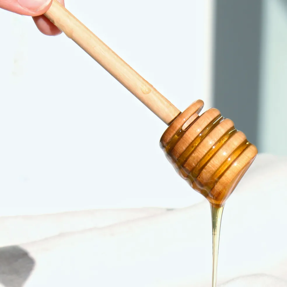 Une cuillère à miel artisanale en bois d’olivier. Son classique design à stries permet de récupérer la bonne dose de miel et évite d’en mettre partout. Sa longueur est pratique pour plonger dans le fond du pot de miel. Le bois d’olivier lui donne un veinage unique et une robustesse dans le temps.