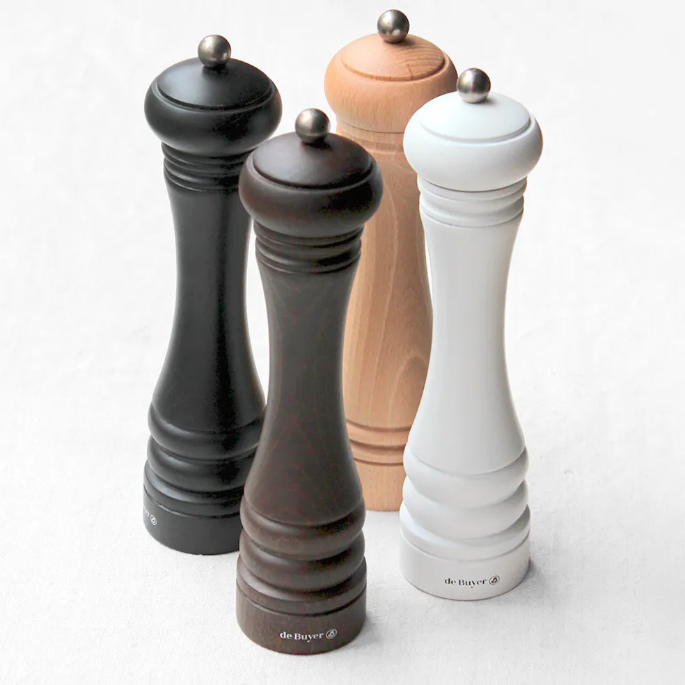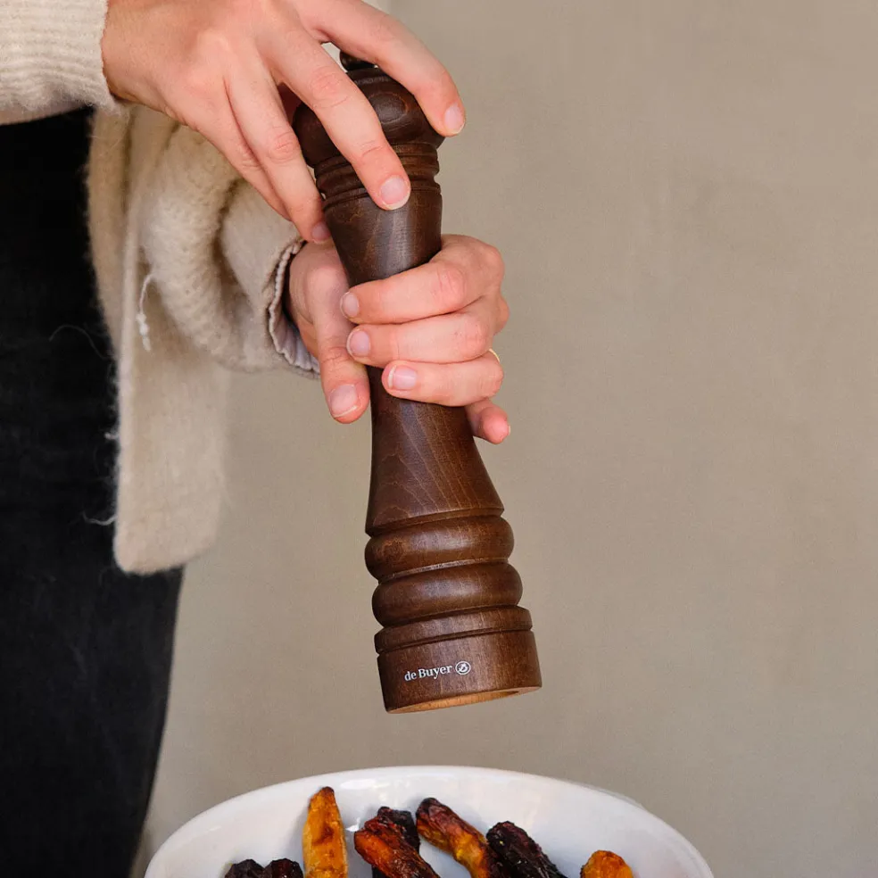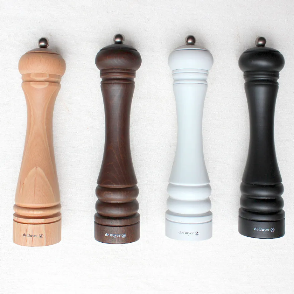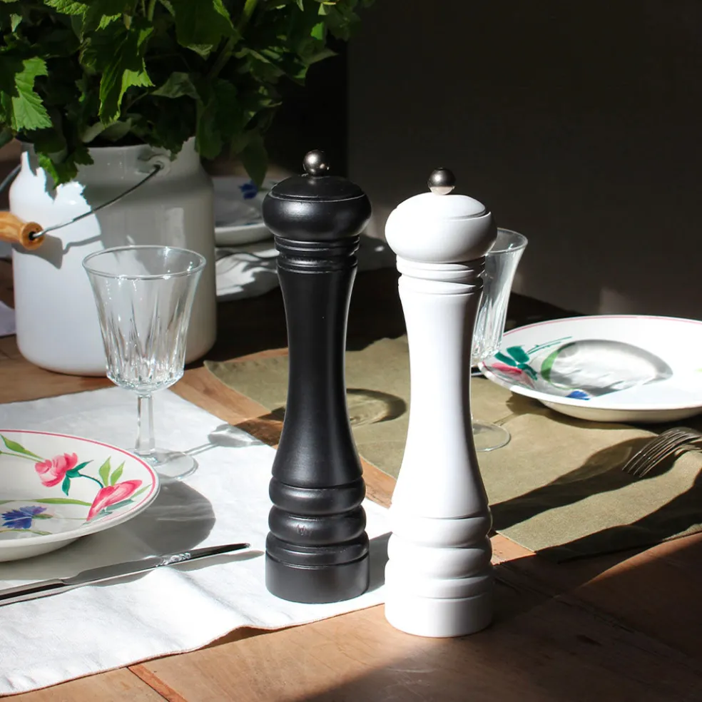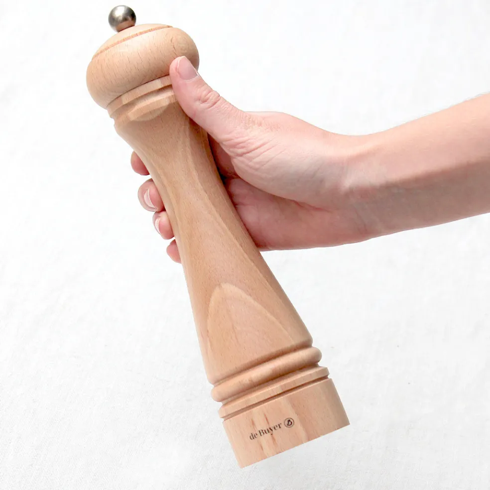 Très grand moulin manuel en bois de hêtre. Son mécanisme en céramique Marlux est adapté pour le poivre, le sel et certaines épices. Son bouton permet de régler la mouture à votre convenance. Un très bel objet, pratique et élégant, à disposer à table.
