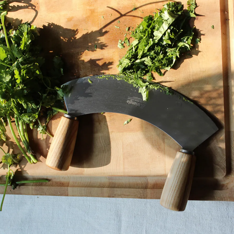 Un ustensile très pratique pour hacher finement des herbes ou des condiments. Sa grande lame de 23 cm, aiguisée à la main, assure une bonne ampleur de coupe. Ce bel objet artisanal avec des poignées en bois de frêne être un très joli cadeau.