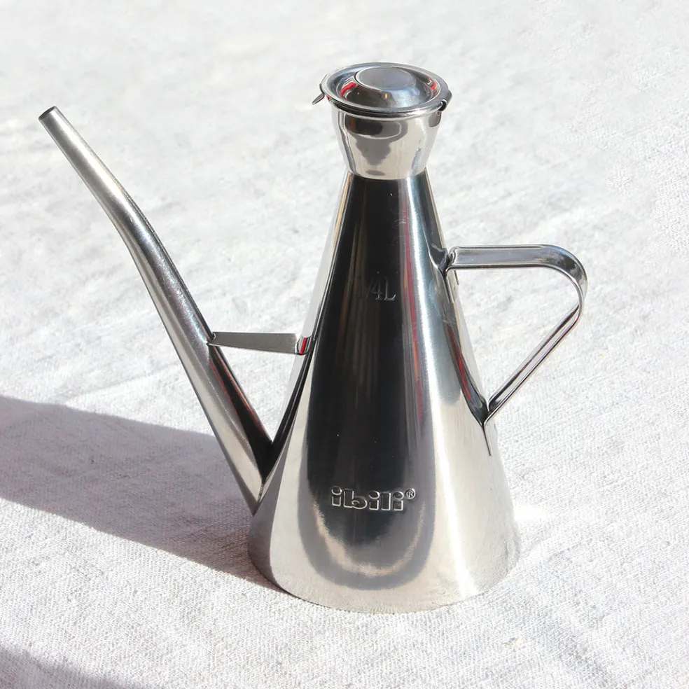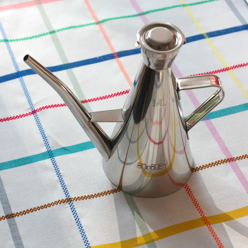 Un petit huilier en inox traditionnel avec anse et couvercle. Il peut conserver et servir de l’huile d’olive, du vinaigre, de la sauce soja et des sauces à faible viscosité. Contenance de 0,3L.