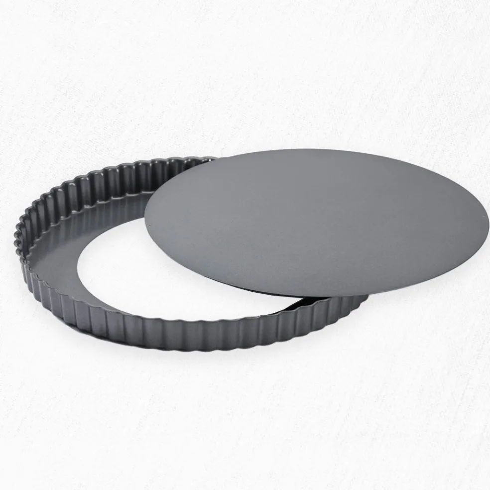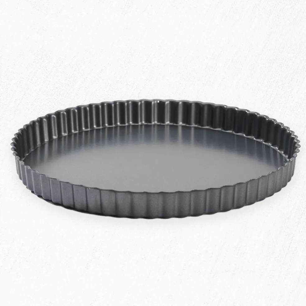 Ce moule à tarte rond à fond en acier antiadhésif possède un fond démontable ce qui rend le démoulage des tartes très facile. L’acier est une matière conductrice de chaleur qui atteint de haute température ce qui permet la caramélisation des sucs. Enfin, l’acier permet une diffusion homogène de la chaleur.