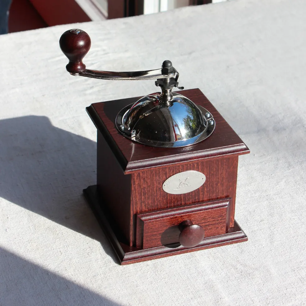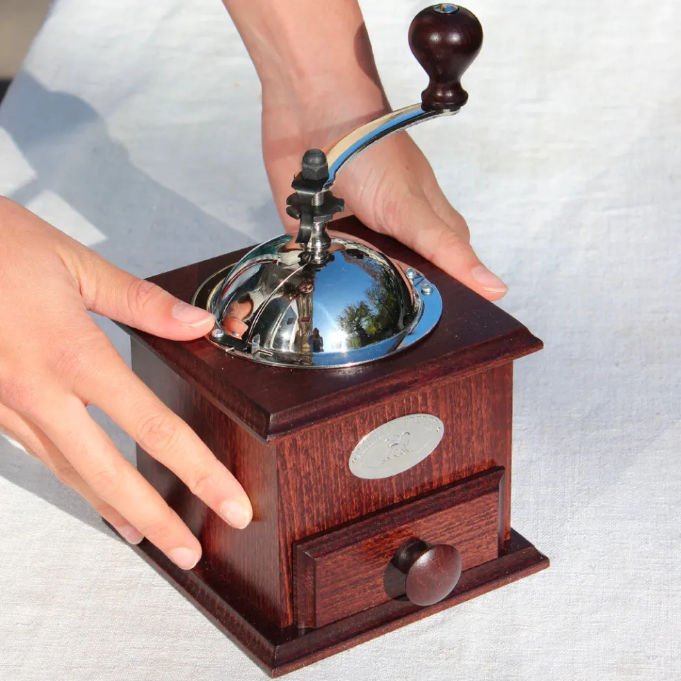 Clin d’œil aux moulins à café de nos grands-mères : le moulin à café manuel Peugeot en bois de hêtre est un moulin de forme carrée à manivelle avec tiroir qui permet de récupérer le café fraîchement moulu. Le réglage de la mouture (plus ou moins fine selon le type de café recherché) s’effectue avec la molette située sous la manivelle. Arômes et saveurs du café sublimés.