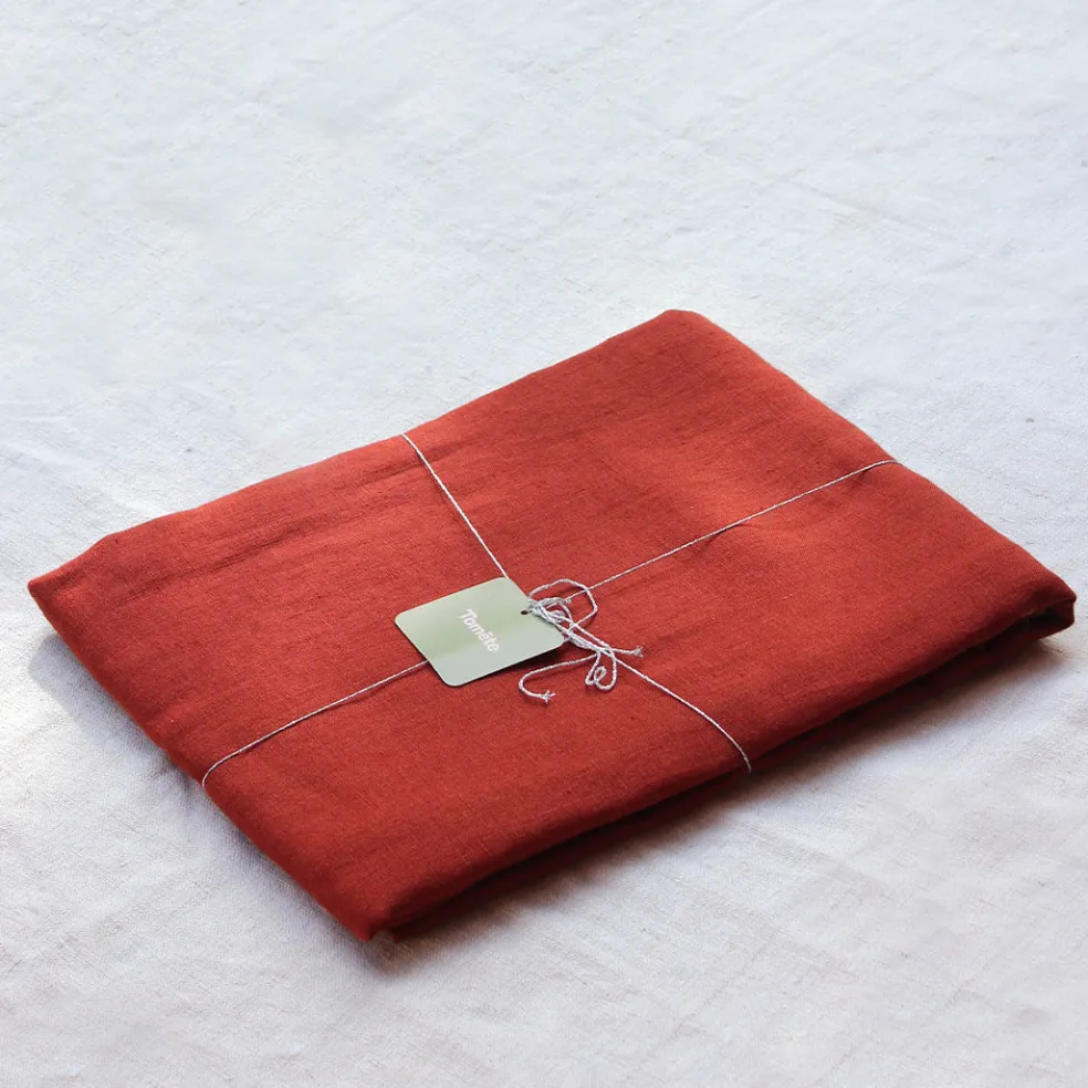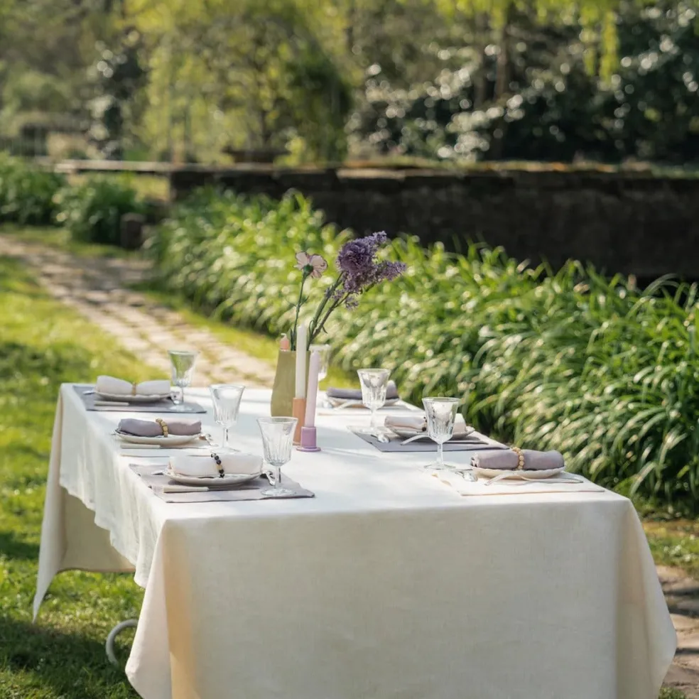 Une nappe rectangulaire 100% lin au toucher soyeux et aux bordures délicatement brodées. Ce modèle est décliné dans des coloris élégants signatures de la marque Tomète et existe en plusieurs tailles.