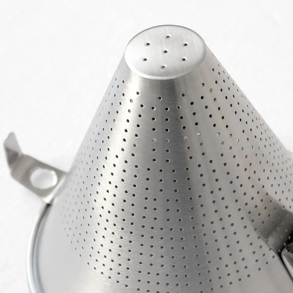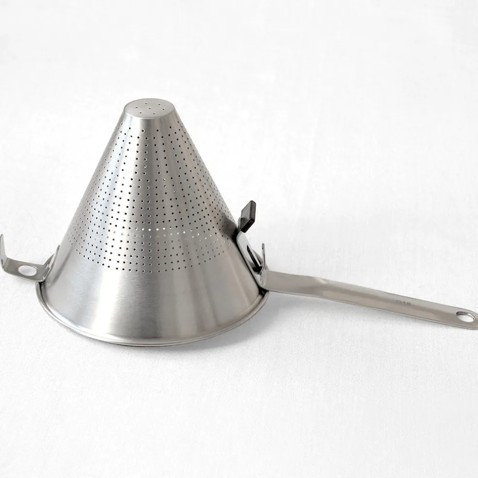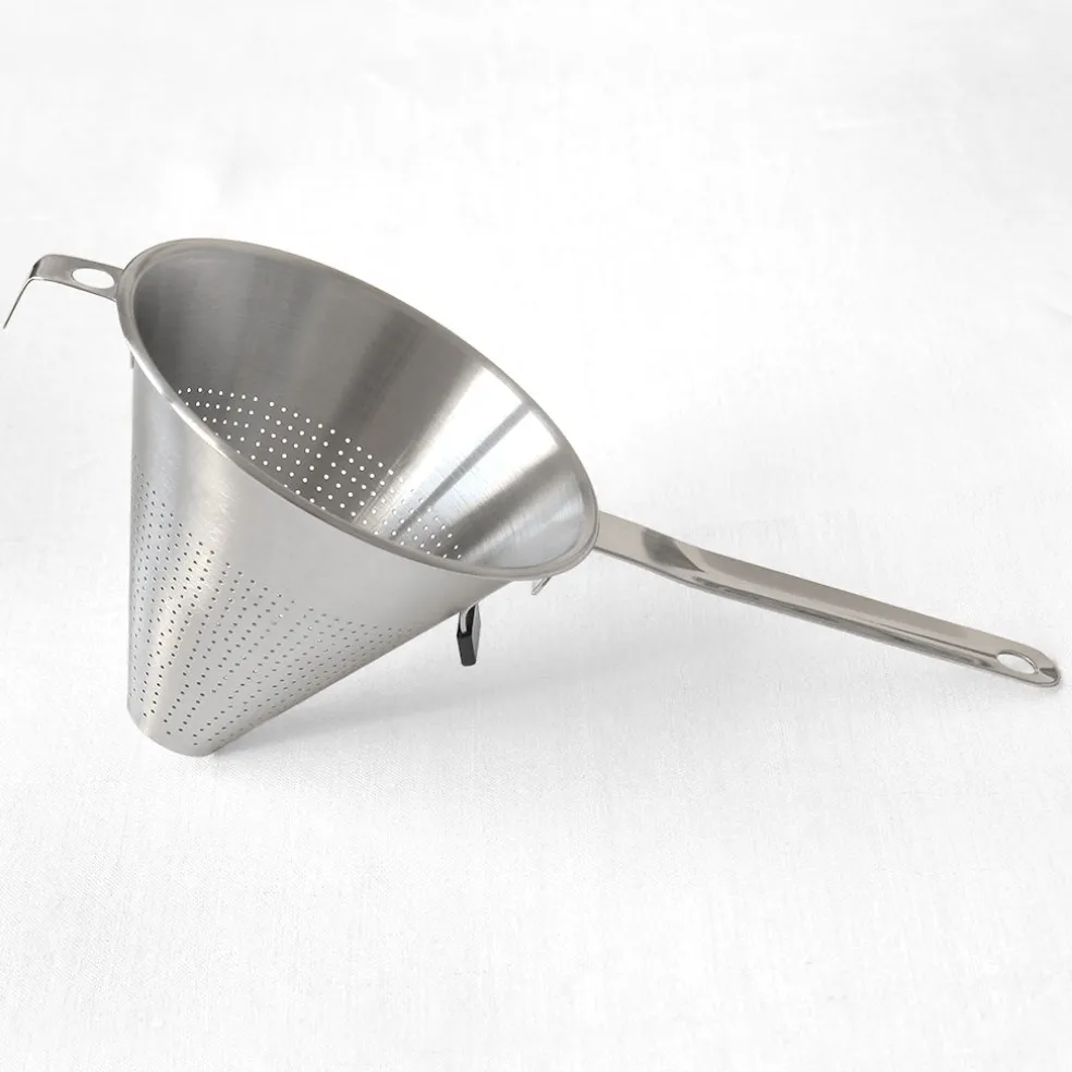 Ce passoire chinois en inox possède un diamètre de 18cm. Il est parfait pour filtrer vos soupes et vos sauces et permet d’obtenir une texture bien lisse et homogène. Son grand manche soudé permet une prise en main confortable et son crochet à l’arrière de le suspendre sur une casserole ou autre récipient afin de récupérer la sauce tamisée.