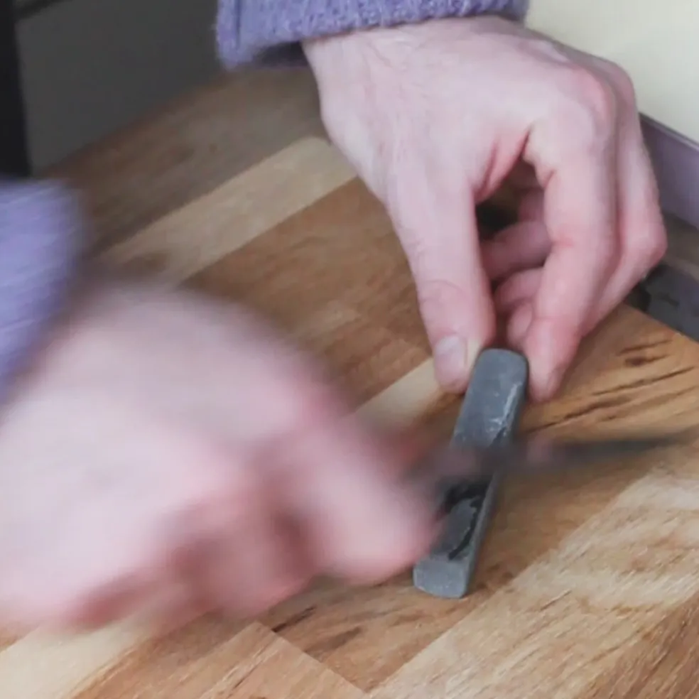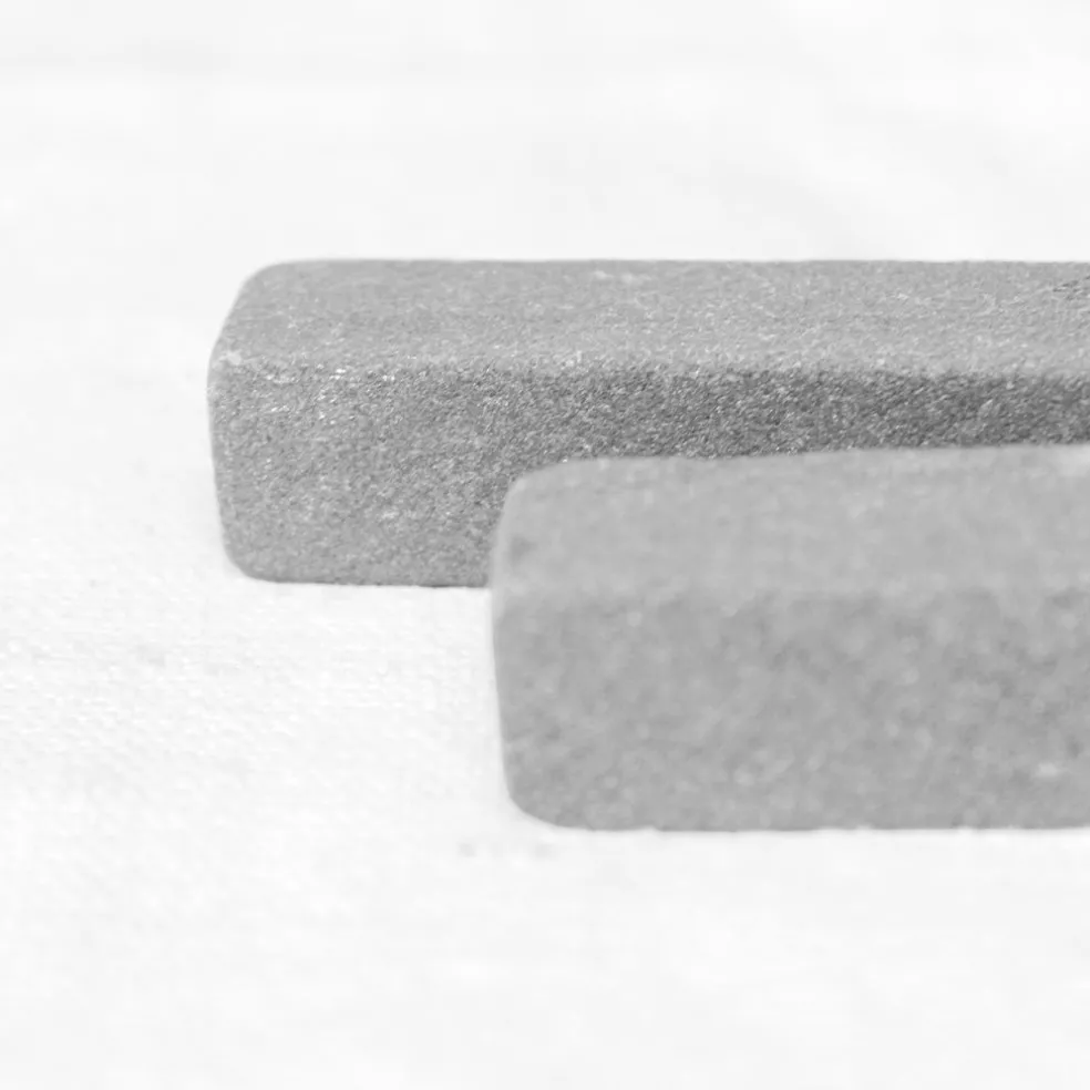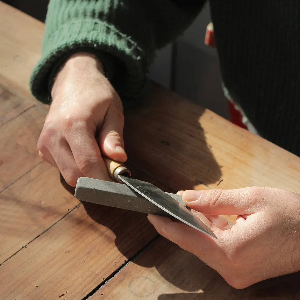 Pierre à affûter rectangulaire, pratique pour l’entretien de vos couteaux au quotidien. Pour l’utilisation, il est recommandé au préalable de plonger la pierre dans l’eau pendant 10min afin de saturer la pierre en eau et de rendre par la suite le processus d’aiguisage plus efficace. Pour l’aiguisage, maintenez votre couteau à un angle de 15 à 20 degrés et faites une dizaine d’allers-retours avec une pression constante.