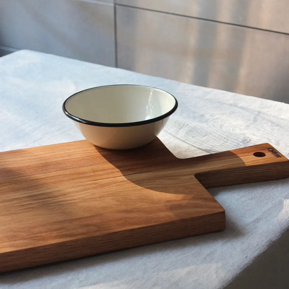 Planche de découpe robuste en bois de chêne. Avec une épaisseur de 2,5cm, cette planche est idéale pour toutes les découpes de légumes ou de viande. Facile d’entretien, elle résiste au temps et aux marques d’usure. Grâce à son fini huilé et son bois de qualité, elle peut aussi servir de planche de présentation.