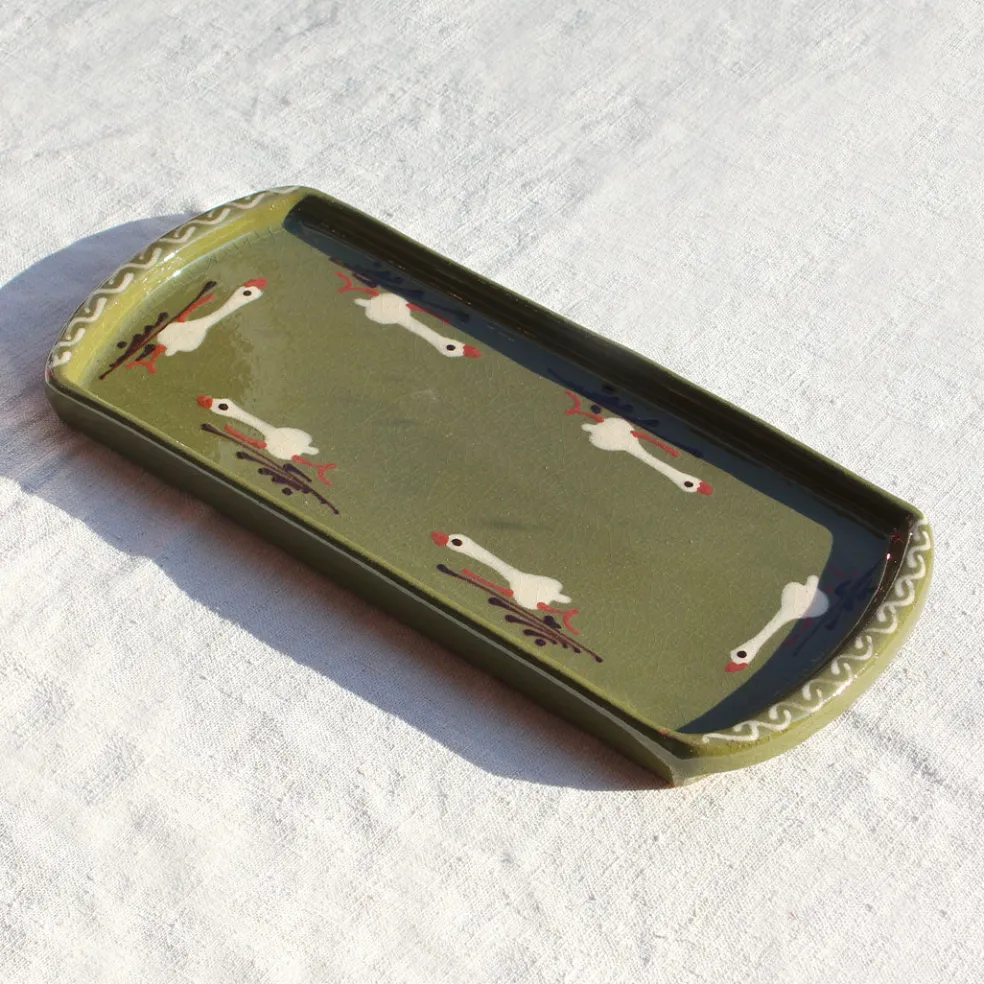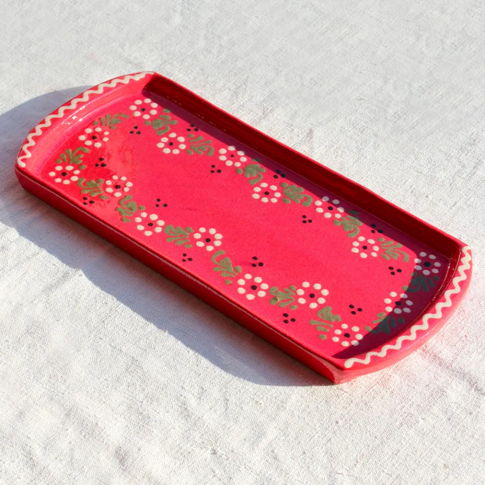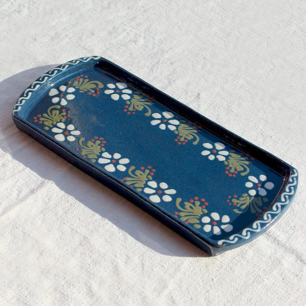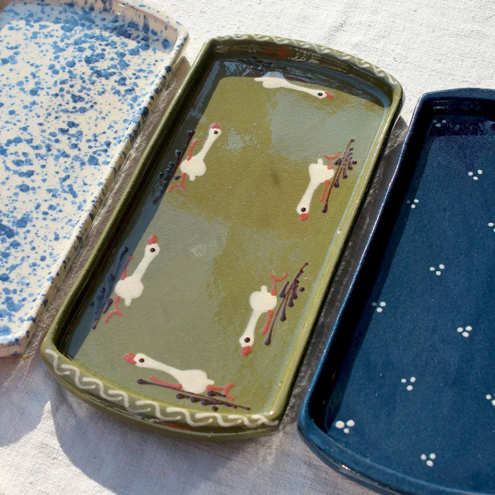 Plat en terre cuite d’Alsace qui permet de servir cakes, gâteaux et terrines. Décliné dans des motifs et coloris traditionnels.
