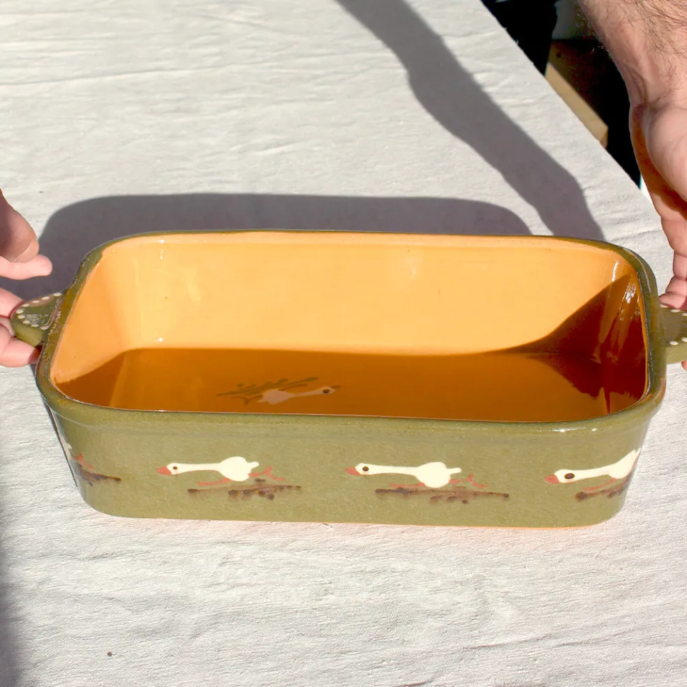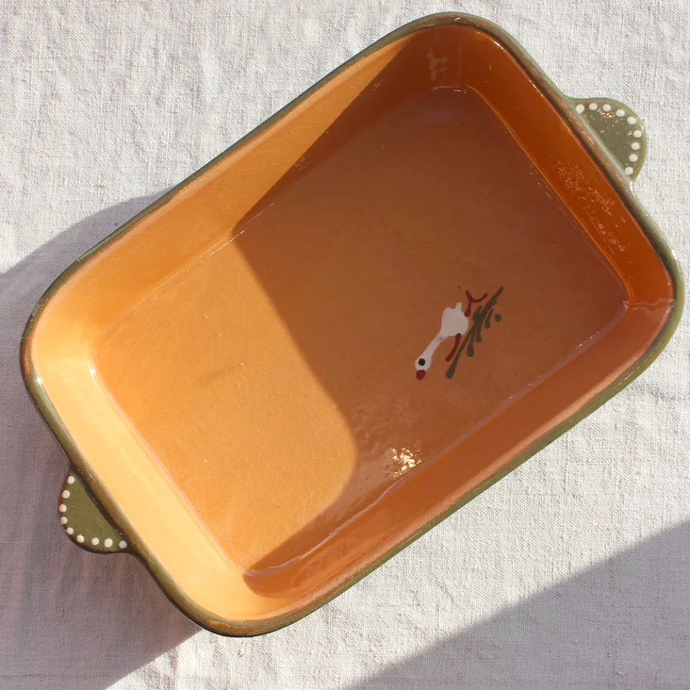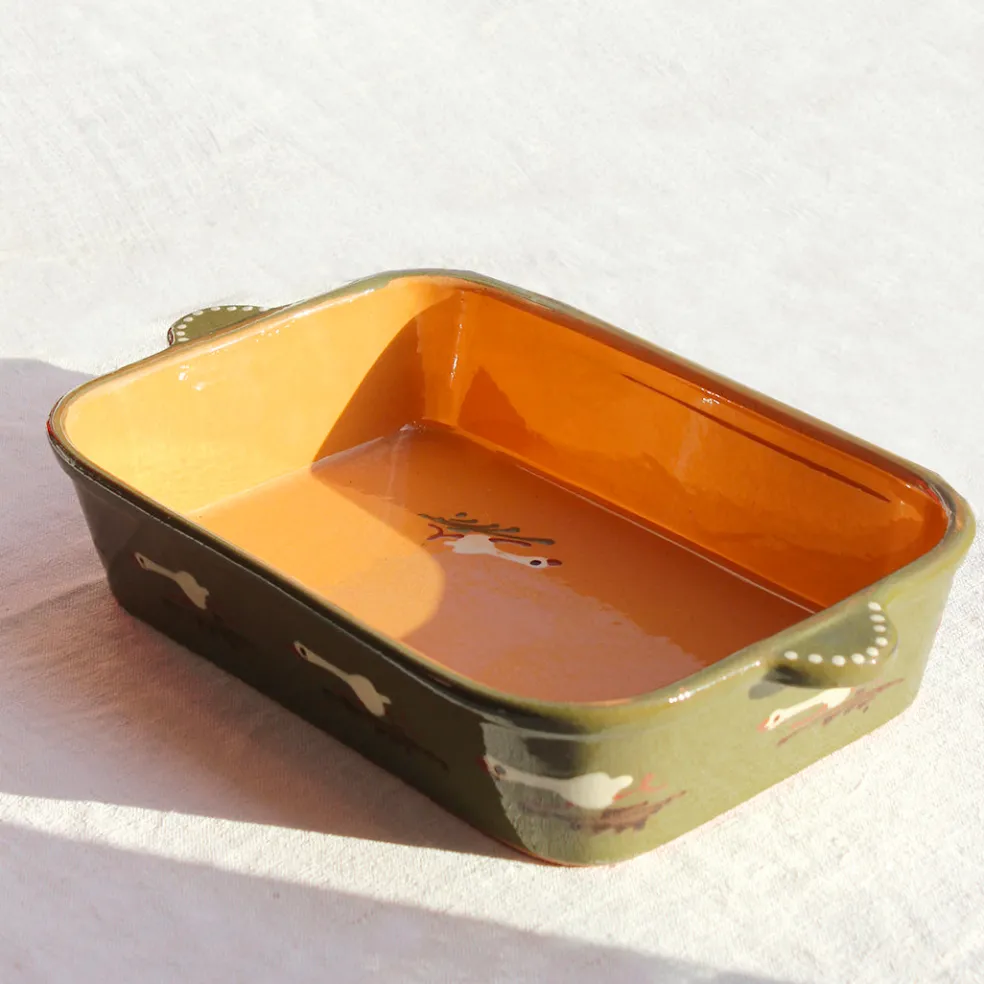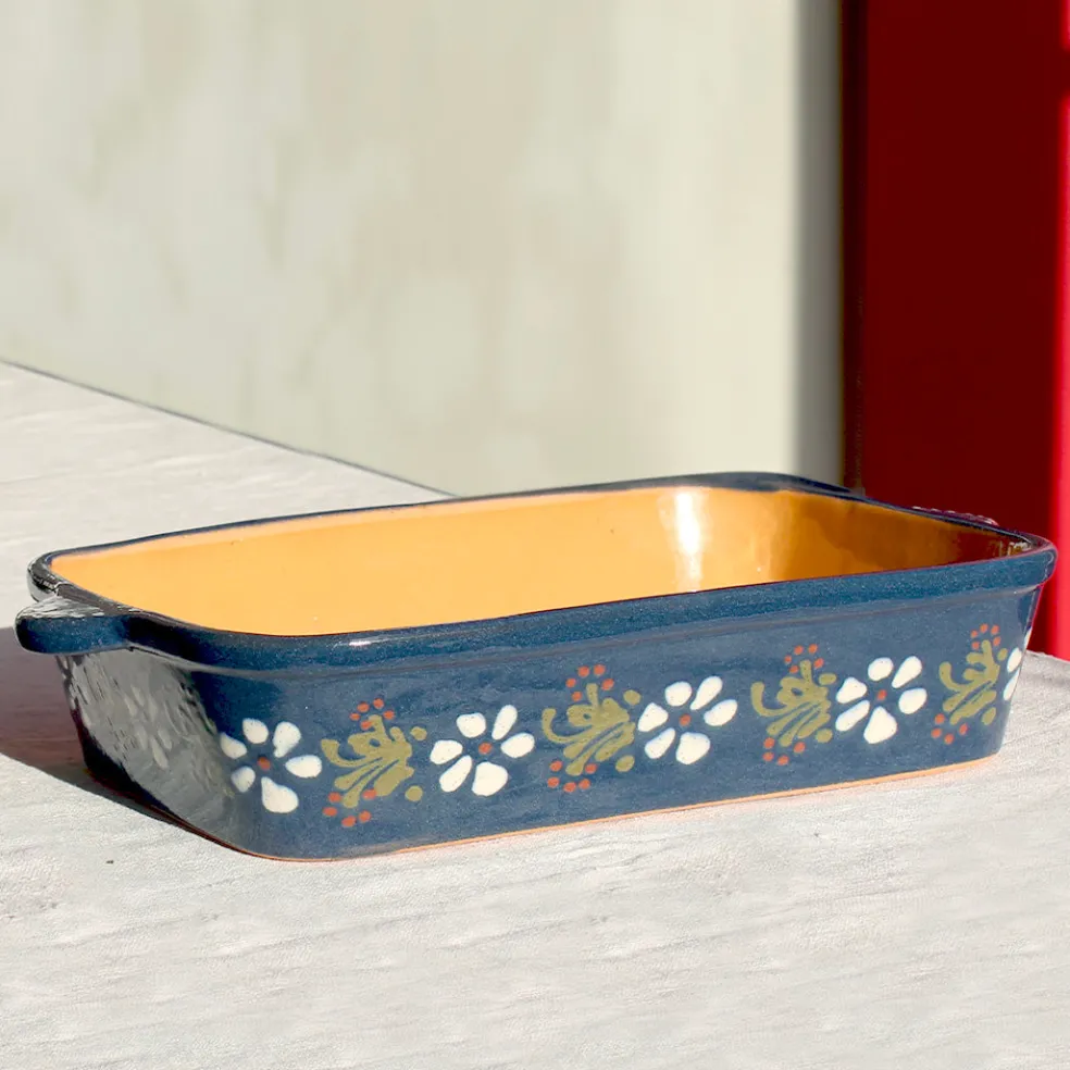 Plat à bords hauts en terre cuite d’Alsace qui permet de cuire et servir de délicieuses recettes comme les lasagnes. Décliné dans des motifs et coloris traditionnels.