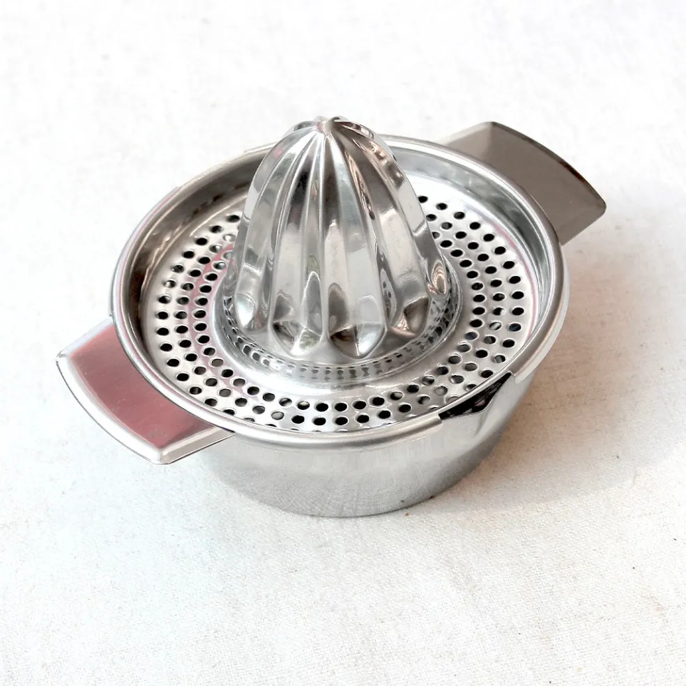 Presse-agrumes manuel avec réservoir en inox qui permet de récupérer le jus de vos citrons, oranges et pamplemousses. Capacité de 500mL.