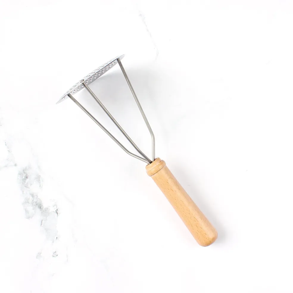 Retrouvez le goût de la purée de votre enfance avec ce joli presse-purée manuel et son manche en bois de hêtre.