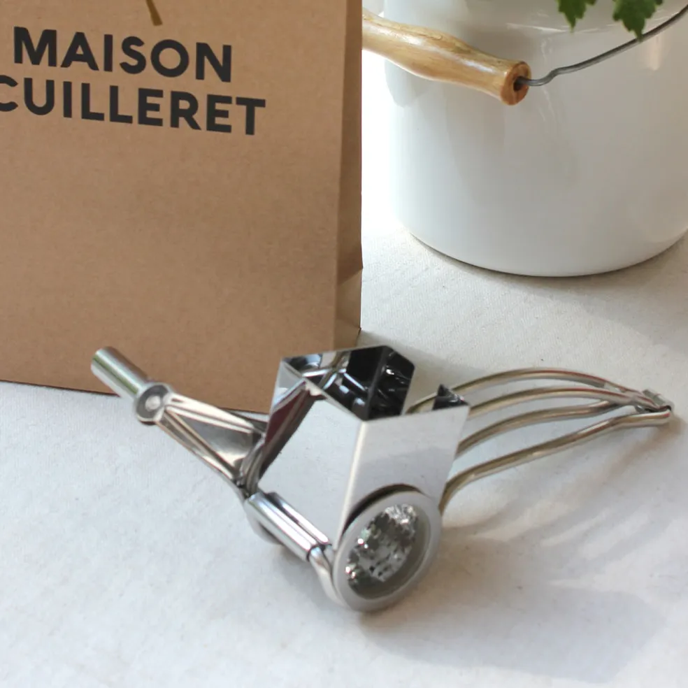 Cette râpe à fromage manuelle est dotée d’une manivelle en inox adaptée à toutes les pâtes dures. Un tour de manivelle qui permet de râper le fromage très facilement et finement, sans se faire mal aux doigts. Démontable pour un nettoyage simplifié après usage.