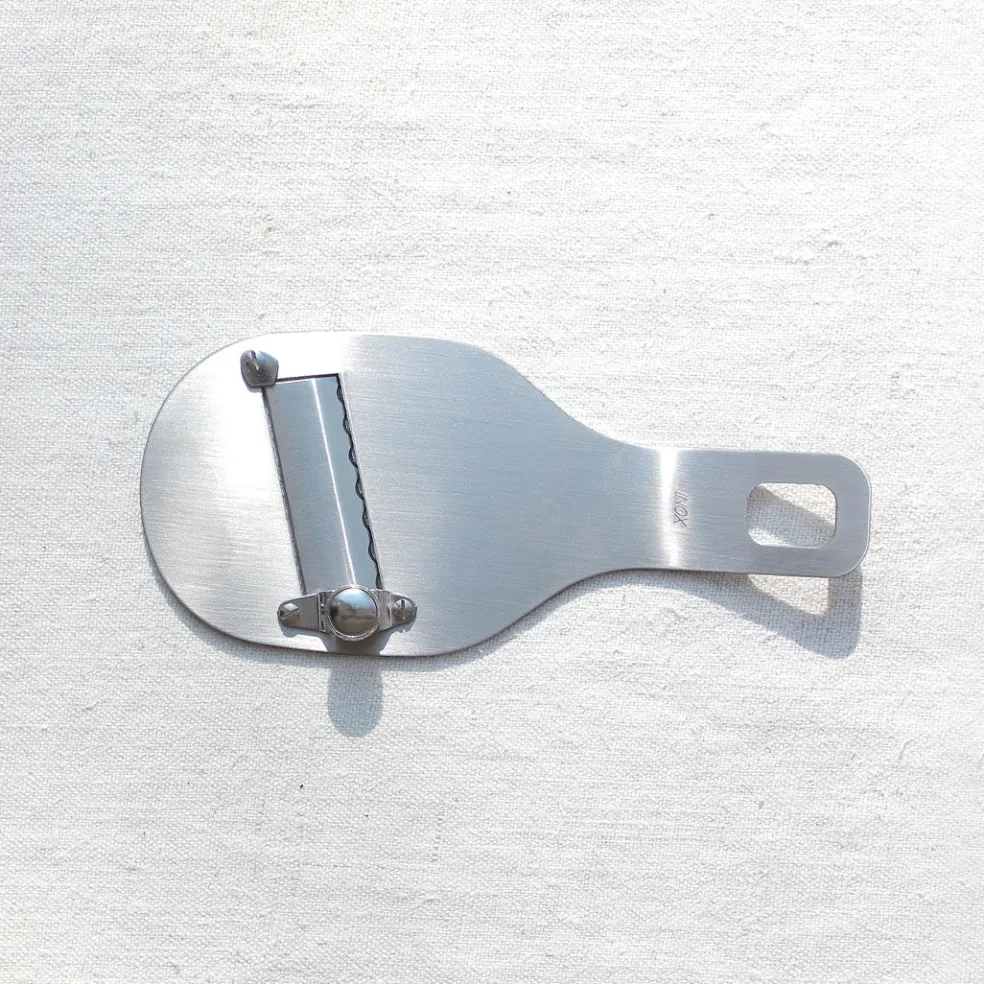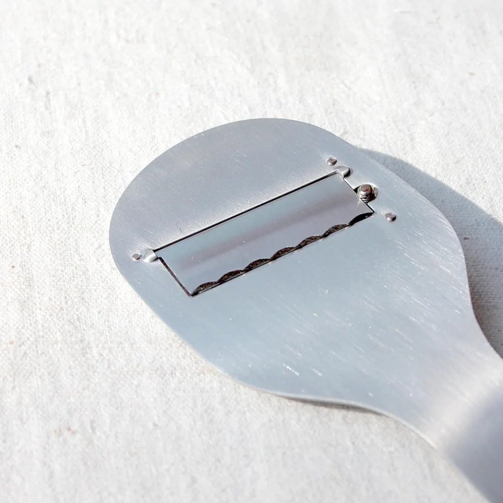 Une râpe à truffes, petits fruits et chocolat en inox. Cet ustensile, doté d’une molette de réglage, permet de régler l’épaisseur de coupe pour un résultat net et précis.