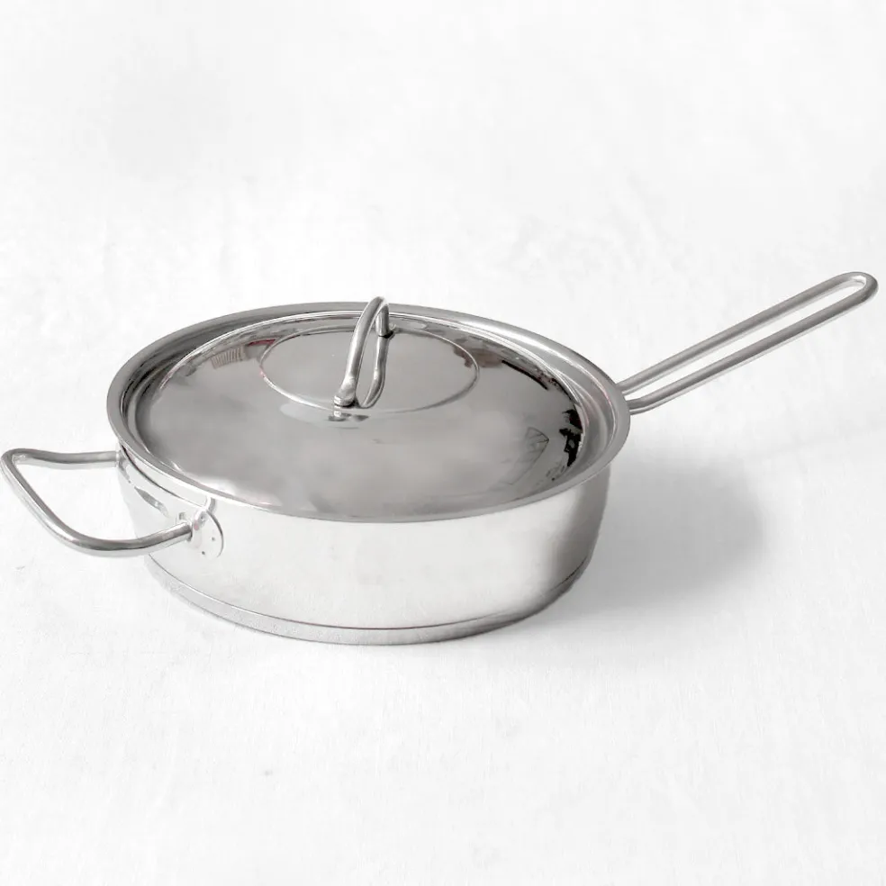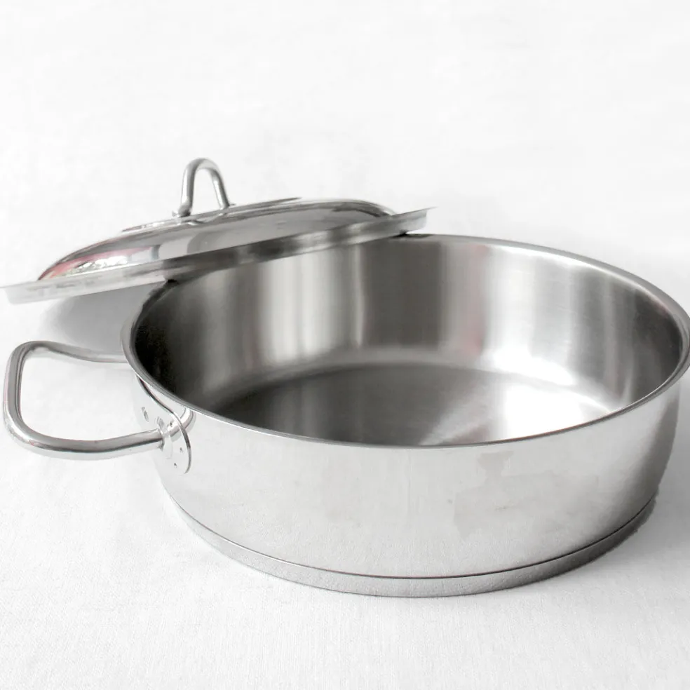 La sauteuse en inox est l’ustensile à mi-chemin entre une casserole et une poêle, très pratique en cuisine puisque ses bords hauts et sa grande taille permettent un large panel de cuissons. L’inox 18/10 garantit une chauffe rapide, précise et uniforme, pour un ustensile professionnel et durable.