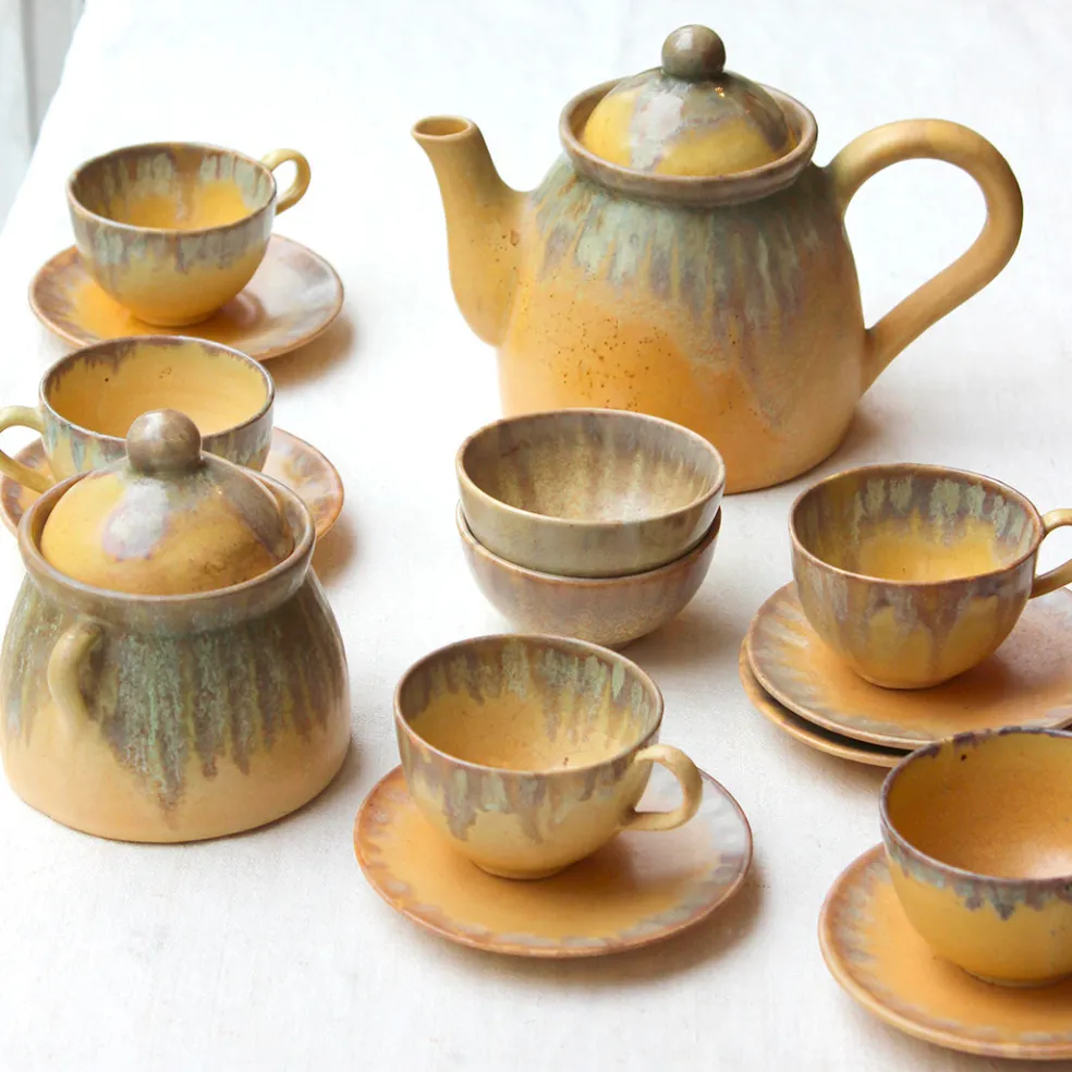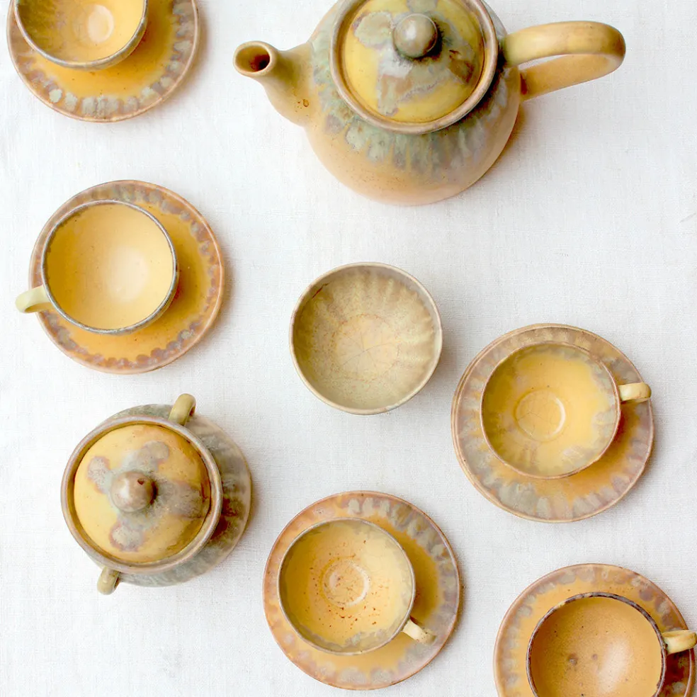 Un magnifique service jaune en grès du Beauvaisis. Chaque pièce est signée Charles Greber ce qui nous permet de dater le service du début du XXème siècle.