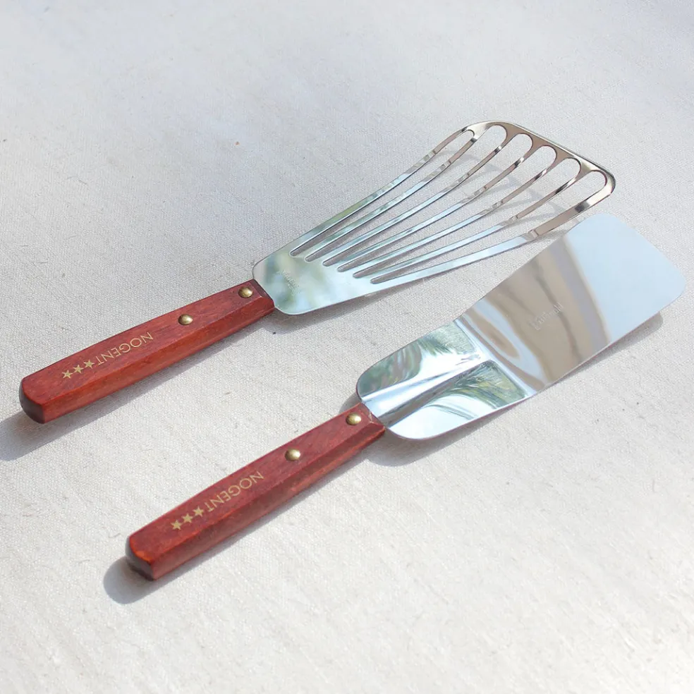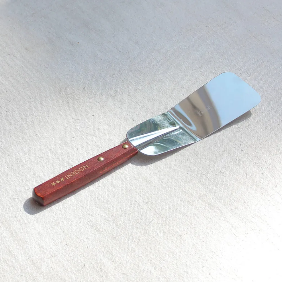 Une simple spatule de cuisine avec un manche riveté en bois de charme vernis. Sa lame en inox est résistante et légèrement flexible pour retourner toutes les préparations en cuisine. Elle peut également être très pratique pour le service.